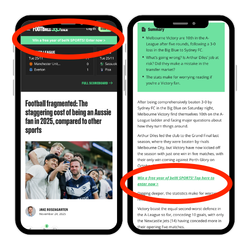 - Owned media - Football360 site placements, feature modules, and persistent entry points