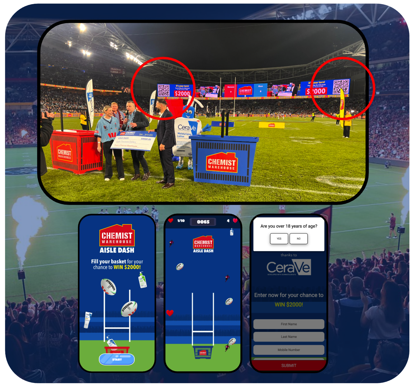 What resulted was “Aisle Dash.” A campaign that brought together on-field excitement and digital interactivity, all accessible via QR Code displayed on Australia’s largest digital screen.